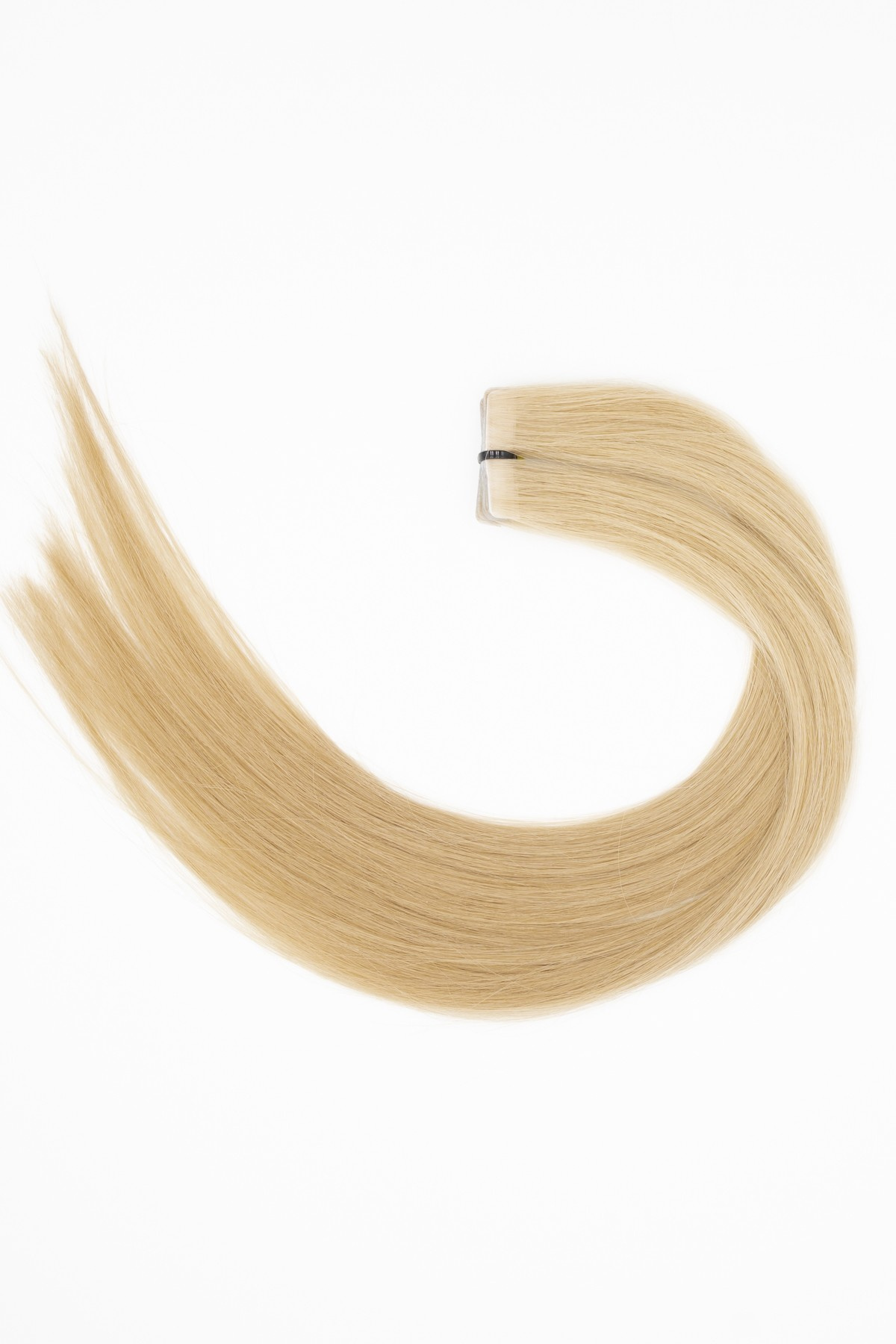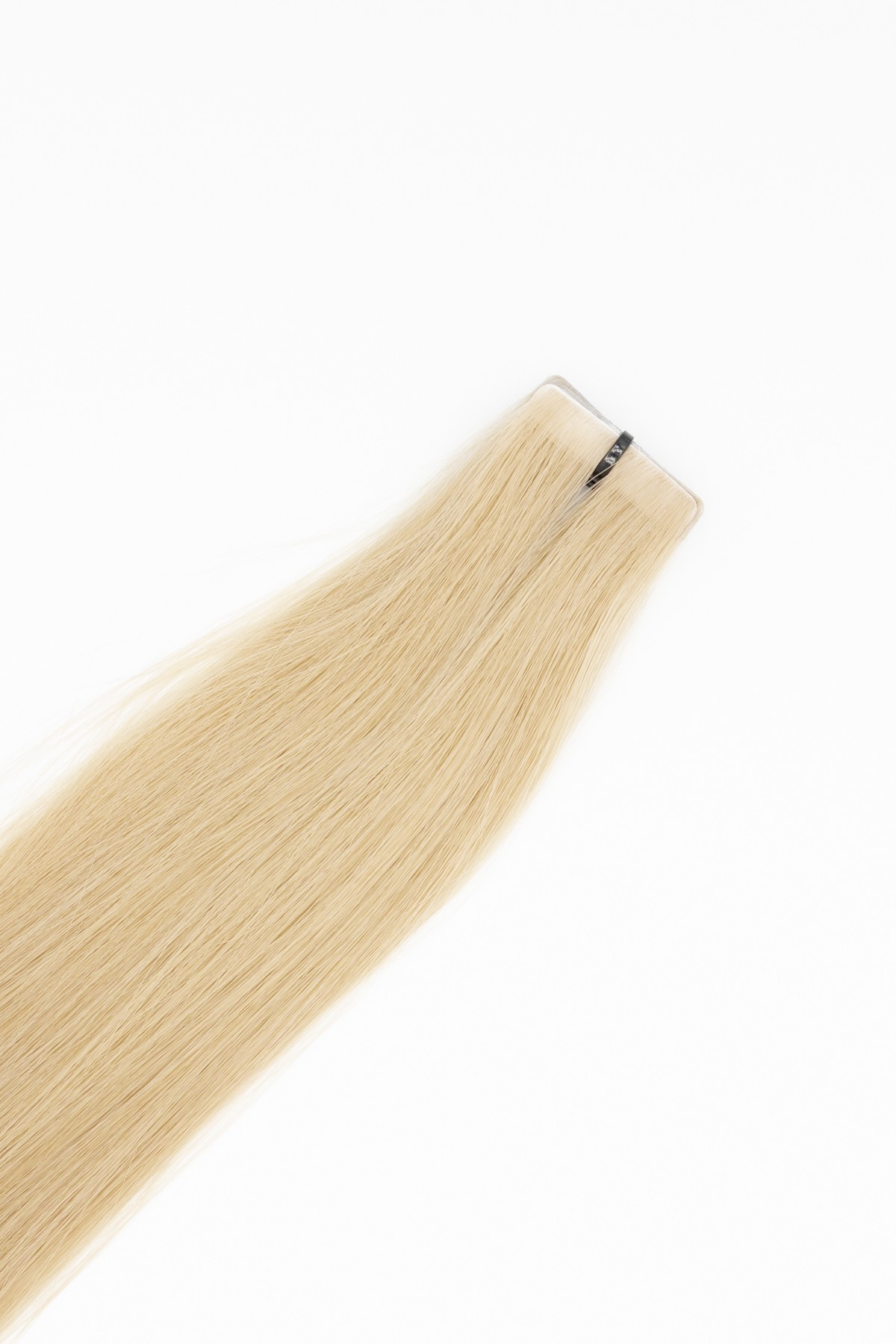 It is completely real human hair that meets the highest quality standard available on the market. All hair is straightened and has a healthy and well-preserved scale structure, which allows the extensions to be reused several times and taped up with new LONGTIME HAIR tape stripes. So that our customers can get the most out of their hair extensions, the human hair of the Invisible Tape Extensions has been double-pulled, i.e. it is processed in such a way that the extensions still have a high density even at the tips and feel fantastically full.