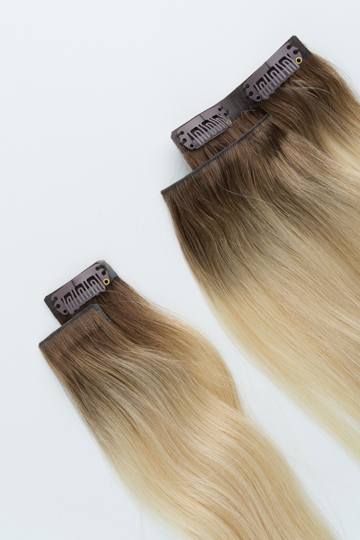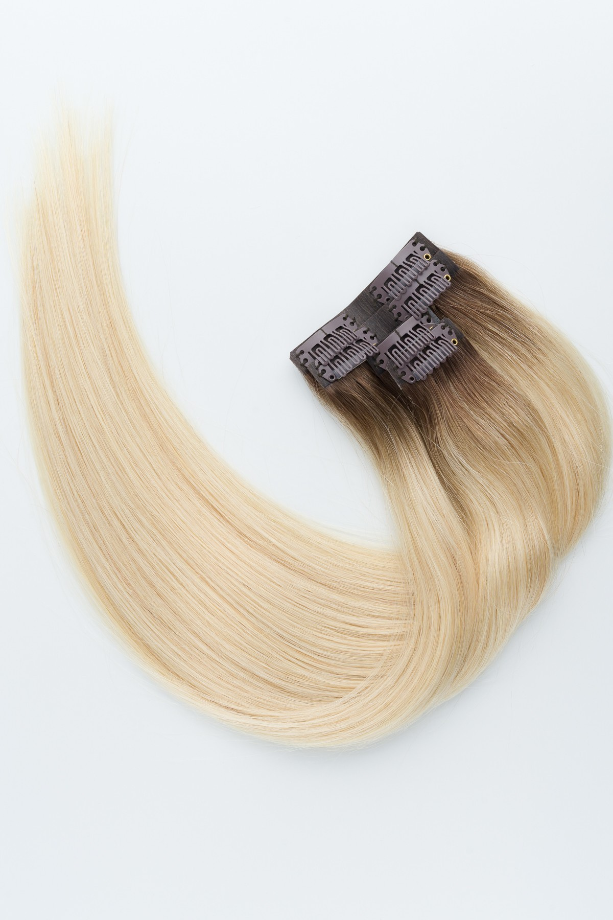 - Hitzestyling nur moderat und mit Hitzeschutz anwenden; Clip-Bereiche aussparen.